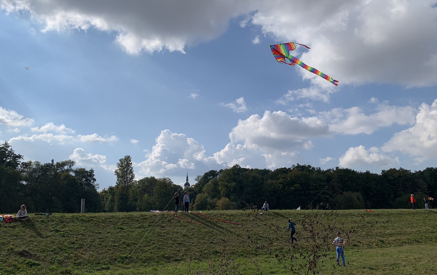 2. Oktober 2025. Es scheint eine goldene Regel im Bildungszentrum Püchau zu sein: Kein Wind zum Drachenfest! Herbstlich fühlte es sich an diesem Oktobertag wirklich nicht an, als die ganze Schule sich auf den Weg in die Püchauer Aue machte. Bei Sonnenschein und blauem Himmel halfen dann aber ein laues Lüftchen, und vor allem viele flinke Beine den schönen bunten Flugdrachen, doch noch die Lüfte zu erobern.