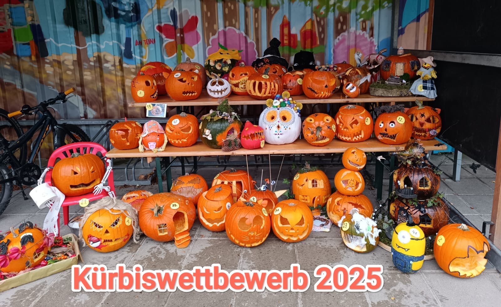 30. Oktober 2025. Unglaublich, was sich die Kinder auch in diesem Jahr wieder einfallen ließen! So viele gruselige, lustige und verrückte Kürbisse schmückten in den letzten Tagen unser kleines Bushäuschen. Jedes Kind durfte für seinen Lieblingskürbis abstimmen und rechtzeitig vor Halloween wurden dann die Siegerkürbisse gekürt.