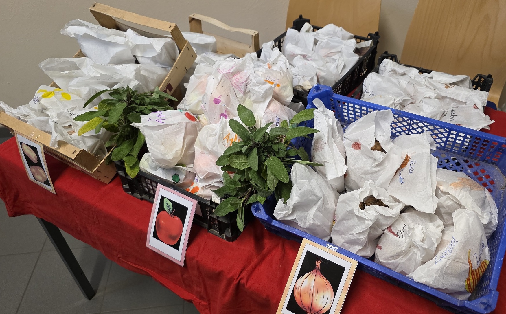 Beim „Verkauf aus der Schubkarre“ freuten sich alle über eine reiche Ernte aus unserem Schulgarten: Vom Samenkorn bis zur Frucht haben die Kinder diese Pflanzen im Schulgartenunterricht gehegt und gepflegt. Zwei Schülerinnen aus der 4. Klasse schreiben dazu: „Wir waren in der Schule und haben beim Verkauf aus der Schubkarre mitgemacht. Es gab Kartoffeln, Zwiebeln, Salbei und Trockenblumen (Silberblatt und Lampionblumen). Die Preise waren sehr gut. Viele Kinder sind gekommen und haben eingekauft.“