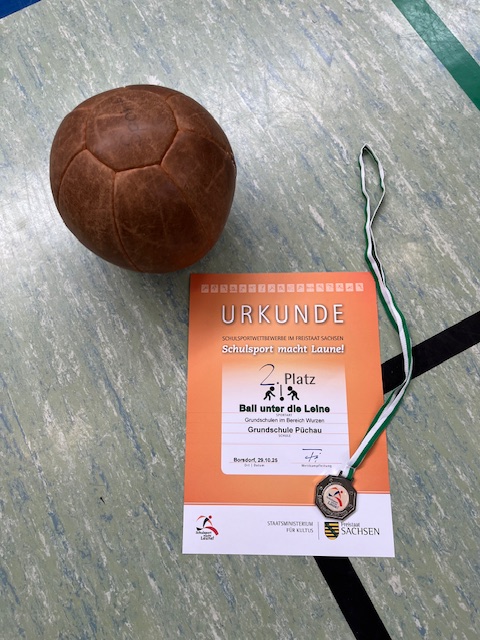 Oktober 2025. Am 29. Oktober bestritten die Kinder des Bildungszentrums Püchau den ersten Sportwettkampf in diesem Schuljahr: Es ging nach Borsdorf zum Ball unter die Leine. Unsere Jungs und Mädchen der 2. Klassen erzielten zunächst den Gruppensieg. Zwar konnten sie sich im Finale gegen die Grundschule Beucha leider nicht durchsetzen, die Kinder freuten sich aber sehr über die wohl verdiente Silbermedaille! Herzlichen Glückwunsch!