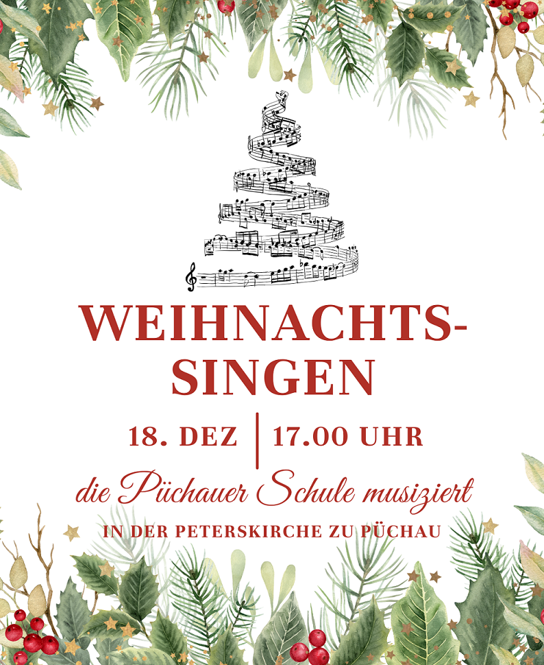 Dezember 2025. Das Püchauer Schulteam wünscht allen eine friedvolle und besinnliche Adventszeit! Wenn Sie sich auch musikalisch mit uns auf die magische Weihnachtszeit einstimmen möchten, sind Sie recht herzlich eingeladen zu unserem Weihnachtskonzert:
