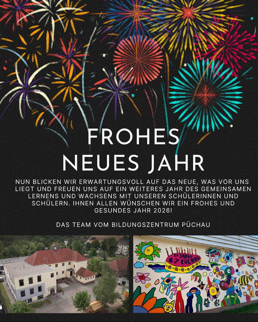Ein Jubiläum bietet immer eine Chance auf Veränderung und Weiterentwicklung – wenn wir sie ergreifen! Eine aufregende Zeit liegt vor uns, in der wir unsere Schule voranbringen und gemeinsam neue Wege beschreiten wollen. Und so gehen wir voller Vorfreude und Neugier voran und freuen uns auf eine Reihe von Feierlichkeiten, die das gesamte Jubiläumsjahr „20 Jahre Bildungszentrum Püchau“ begleiten werden, und in deren Rahmen wir hoffentlich noch viele weitere wichtige Begleiterinnen und Begleiter der letzten 20 Jahre erneut in unserer Schule willkommen heißen dürfen…